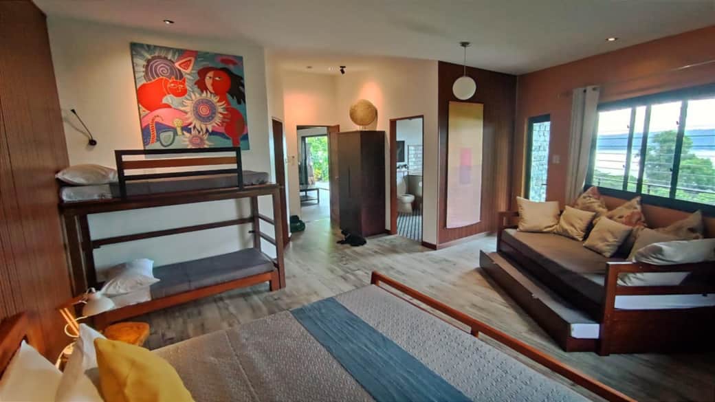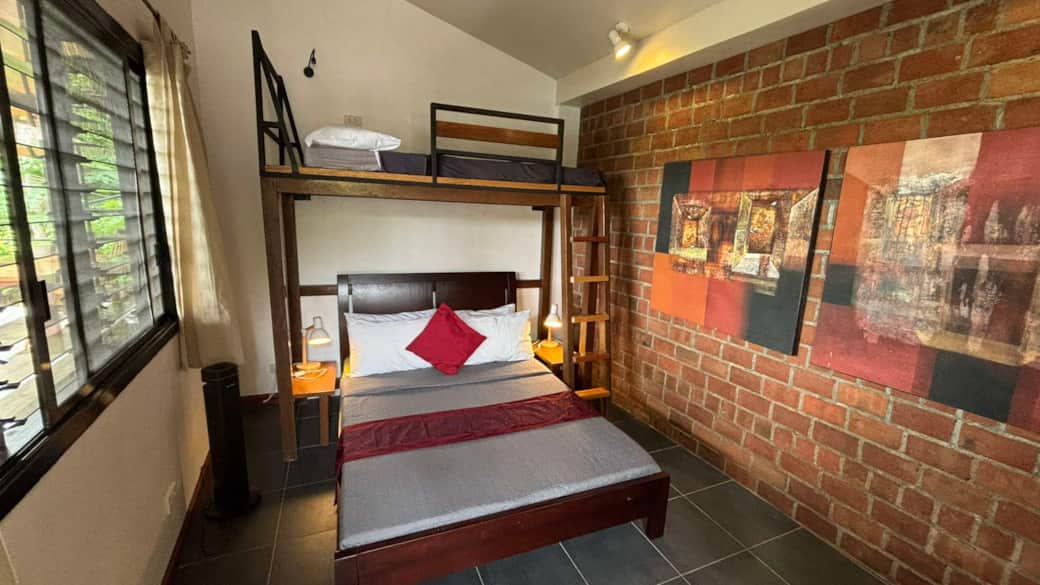 1 queen size bed; one single (bunk) bed
