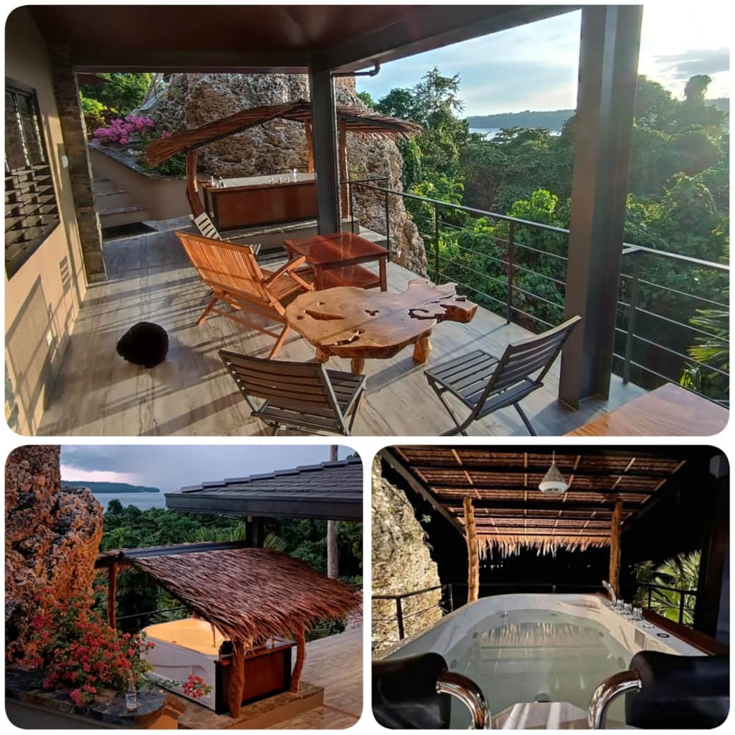 On the large overlooking veranda/lounge near the jacuzzi